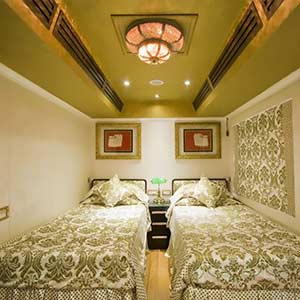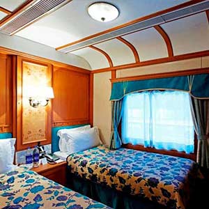 The Train - The Guest carriages of the Golden Chariot train are named after the dynasties which ruled south India over several centuries. Each guest carriage has four cabins with a mix of twins and doubles. The guest cabins are a mix of 13 Double Bed Cabins, 30 Twin Bed Cabins and 1 Cabin for specially abled.