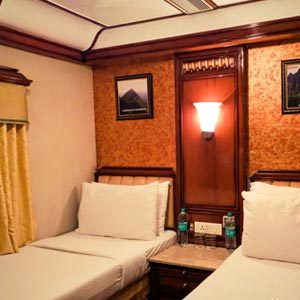 The Train - The Guest carriages of the Golden Chariot train are named after the dynasties which ruled south India over several centuries. Each guest carriage has four cabins with a mix of twins and doubles. The guest cabins are a mix of 13 Double Bed Cabins, 30 Twin Bed Cabins and 1 Cabin for specially abled.